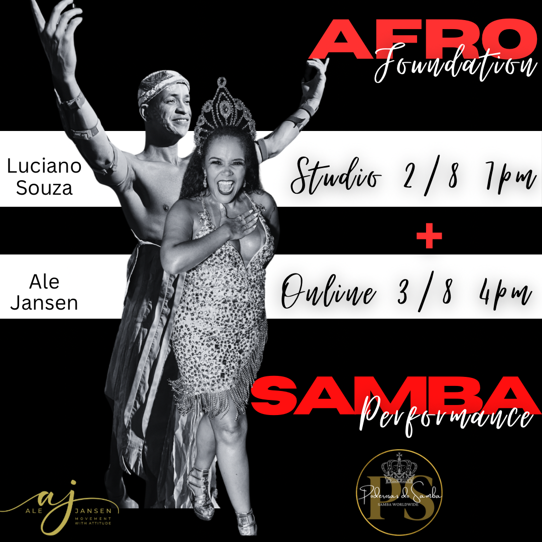 75 mins of Samba technique and performance elements Heels tecnique Led by Ale Jansen If you